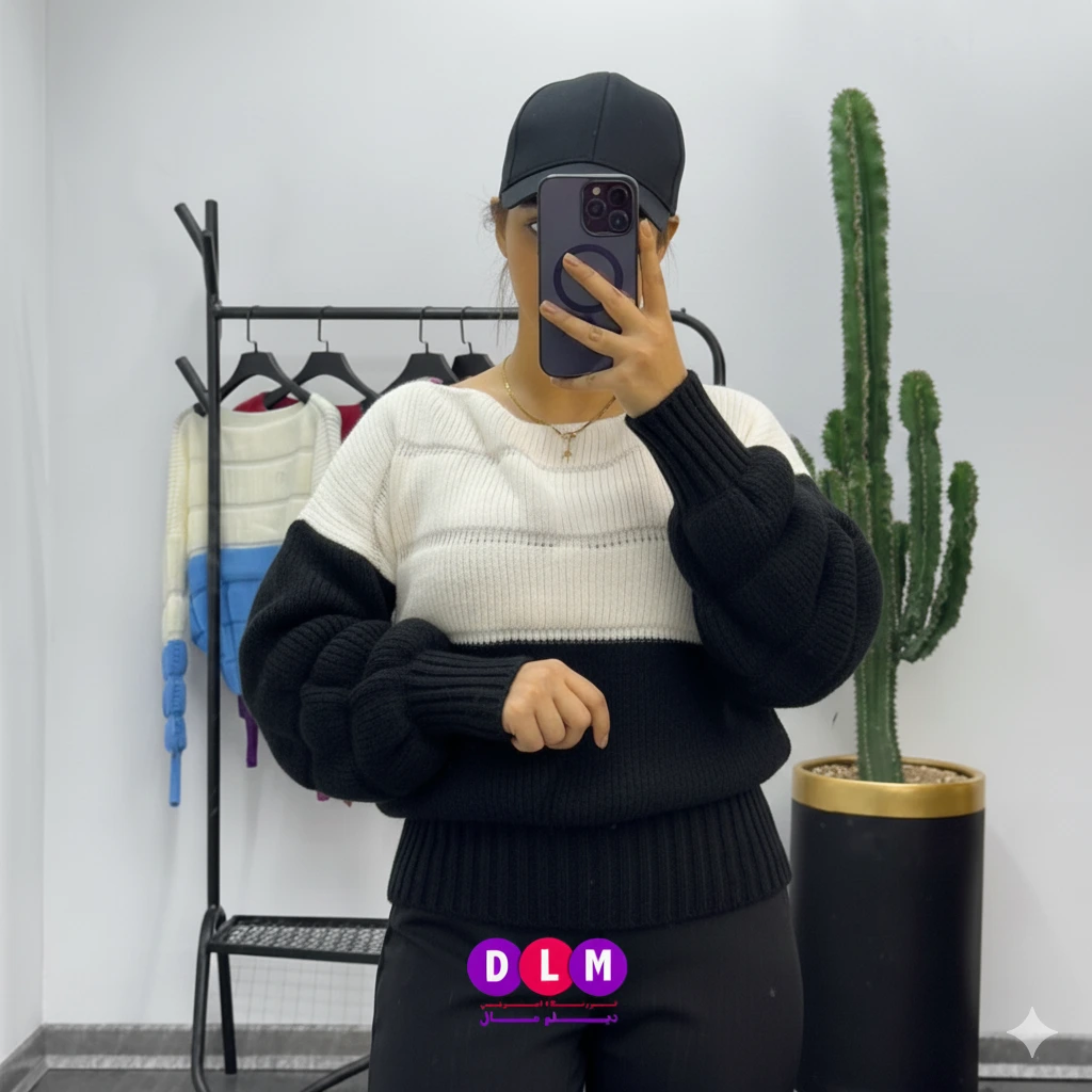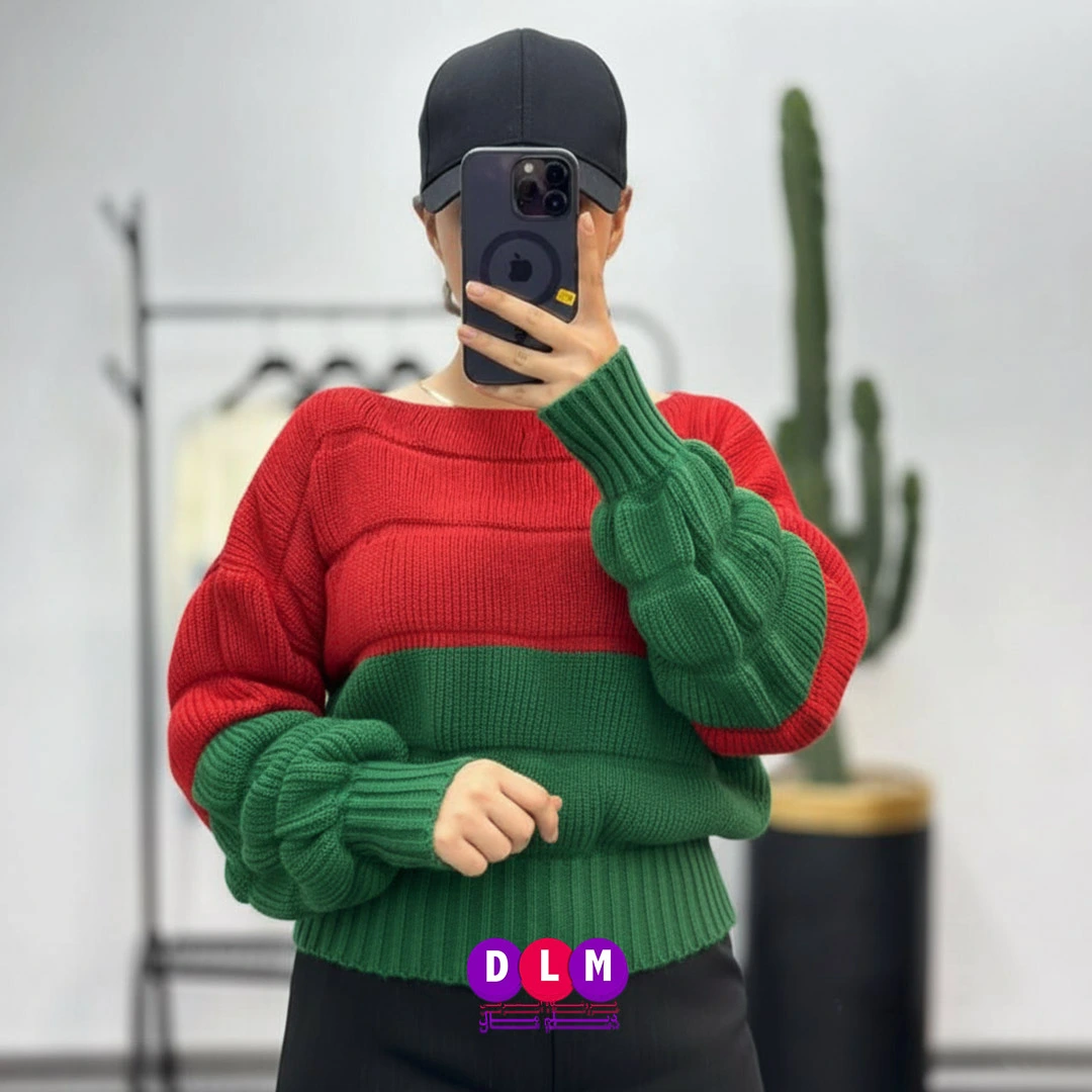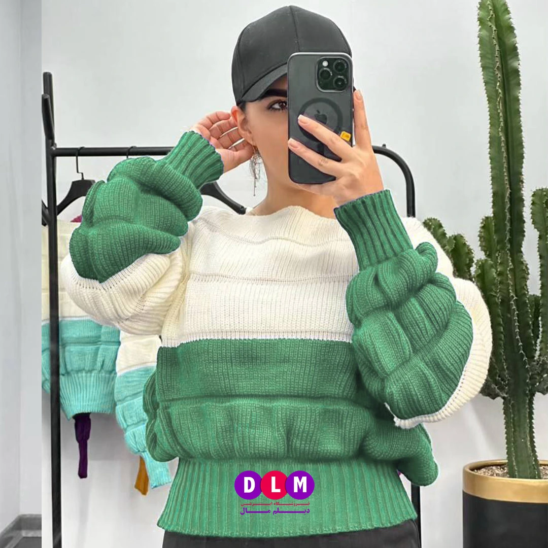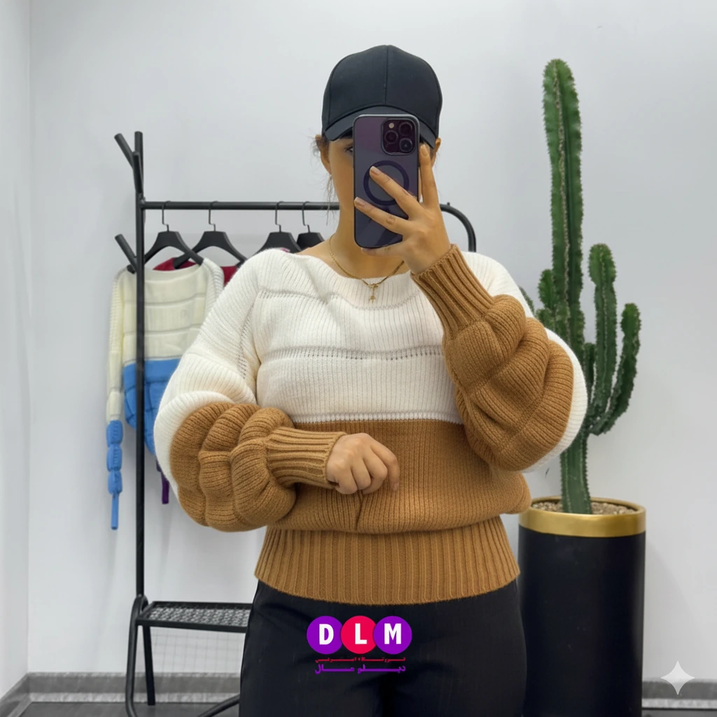 بلوز بافت دو رنگ پفکی | استایلی گرم و مدرن برای روزهای سرد